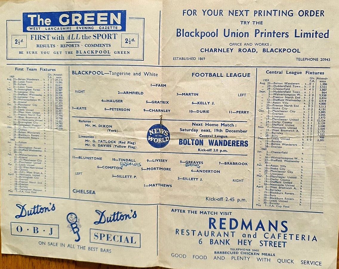 Tony Waiters, Jimmy Armfield, Barrie Martin, Jimmy Kelly, Roy Gratrix, Dave Durie, Stanley Matthews, Arthur Kaye, Ray Charnley, Johnny Green, Bill Perry |