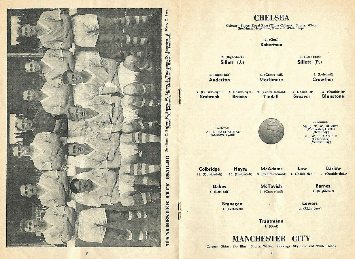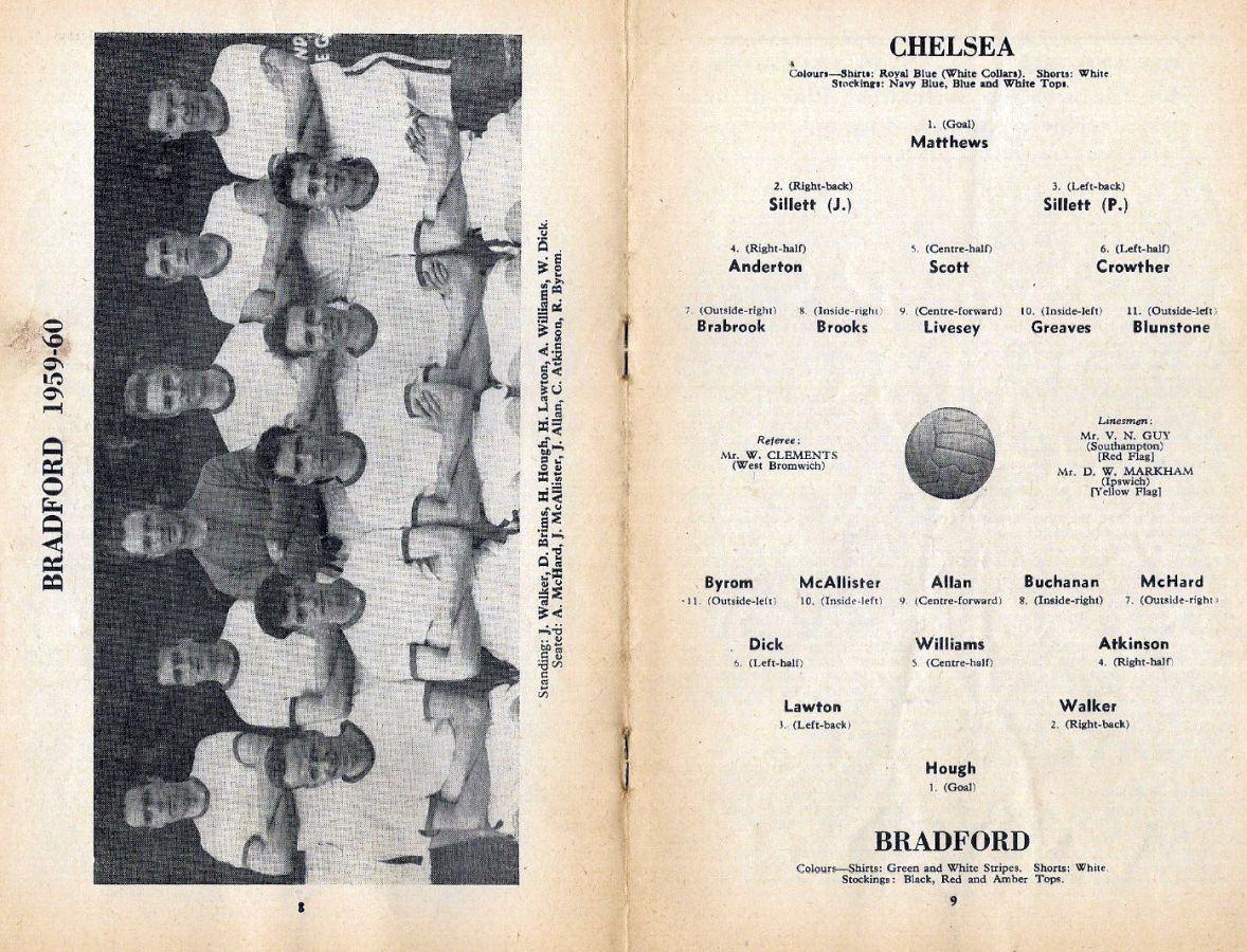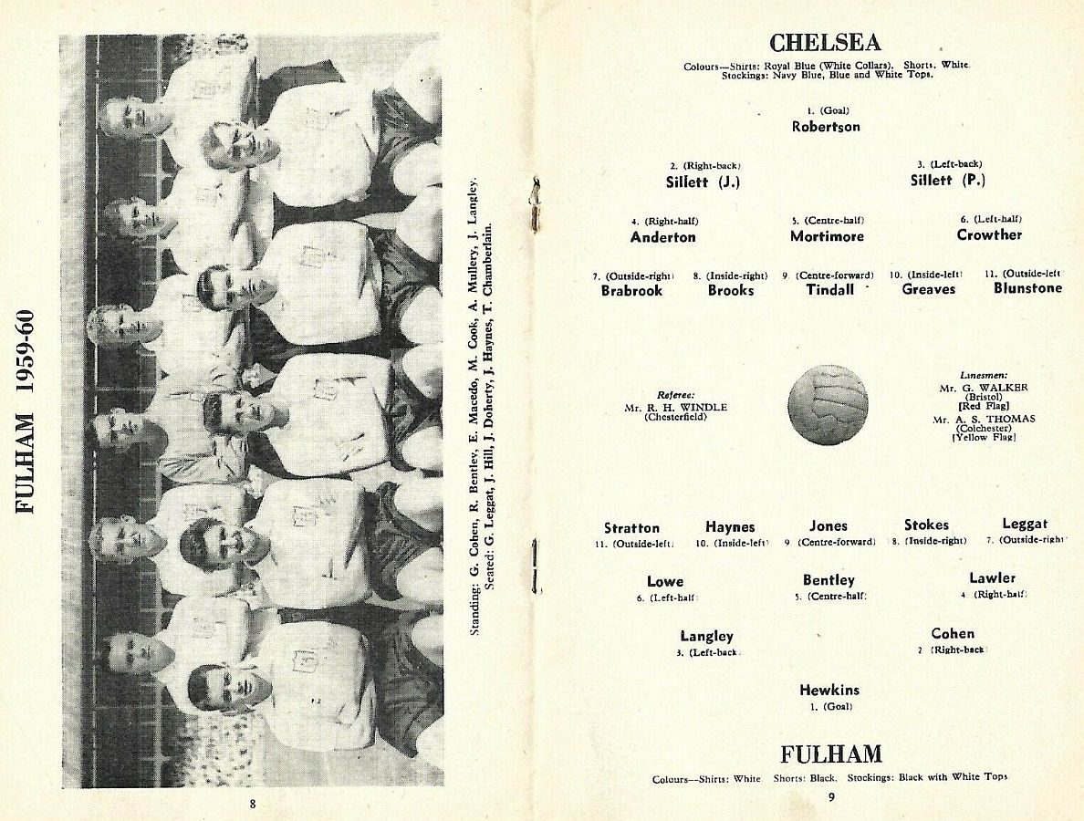 1 Peter Bonetti, 2 John Sillett, 3 Peter Sillett, 4 Sylvan Anderton, 5 John Mortimore, 6 Stan Crowther, 7 Peter Brabrook, 8 Jimmy Greaves, 9 Ron Tindall, 10 Johnny Brooks, 11 Frank Blunstone |