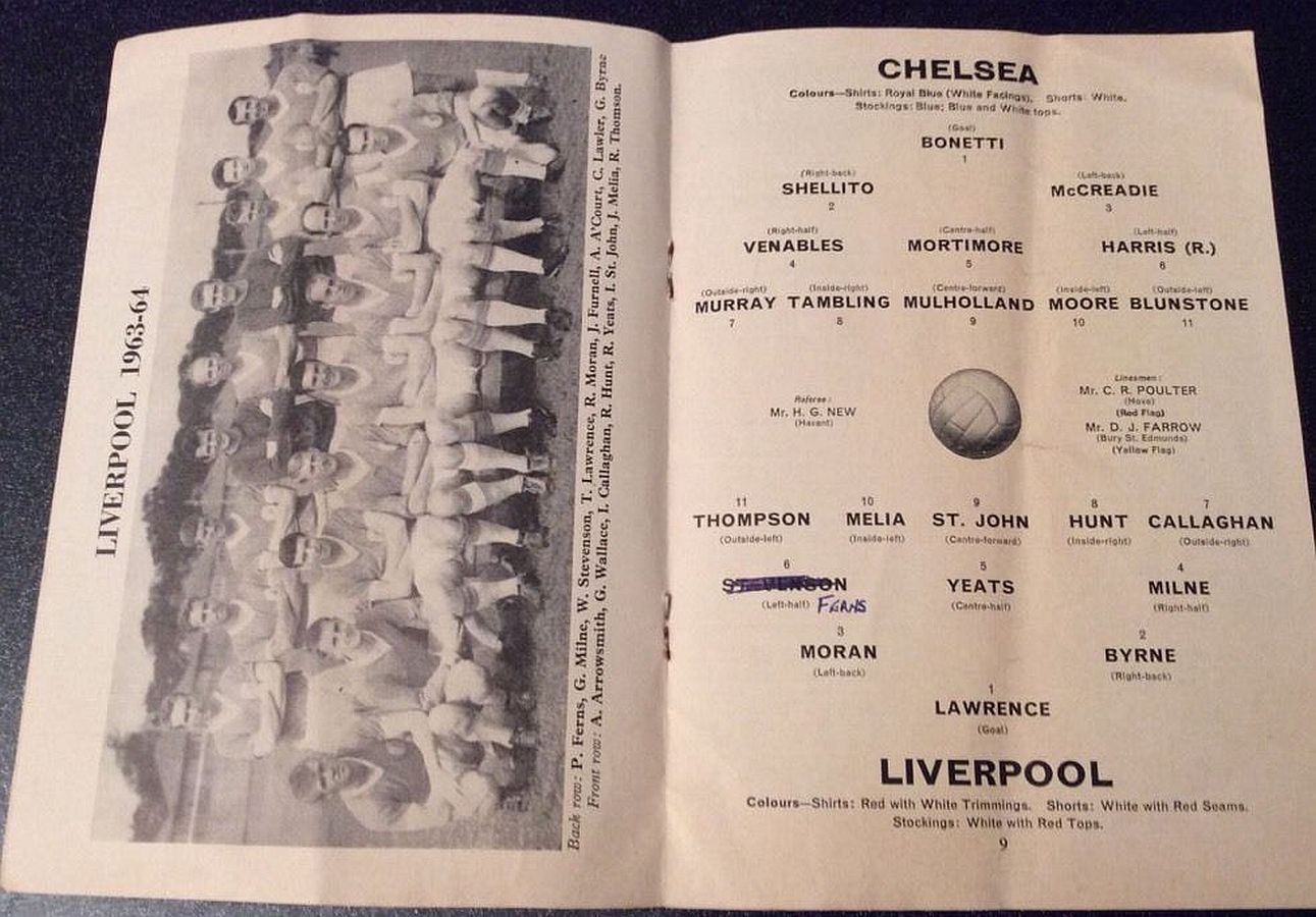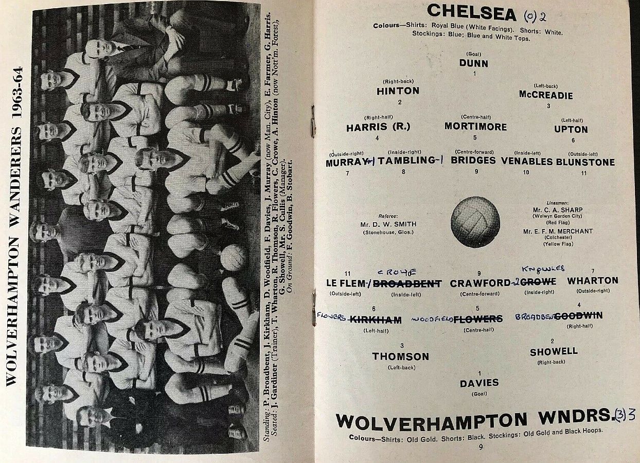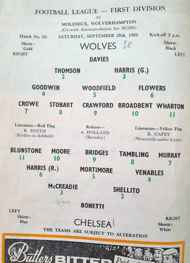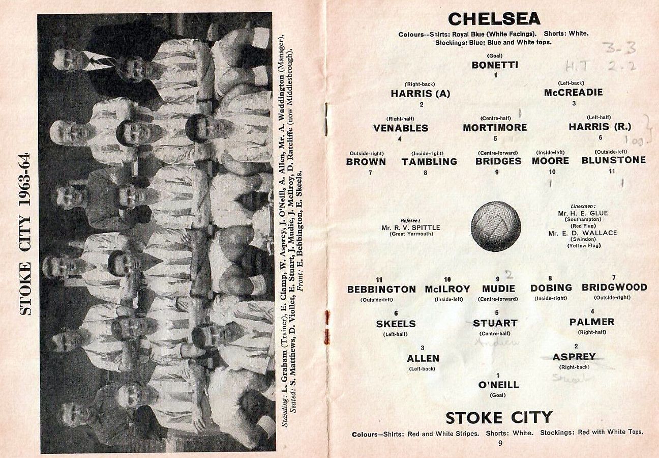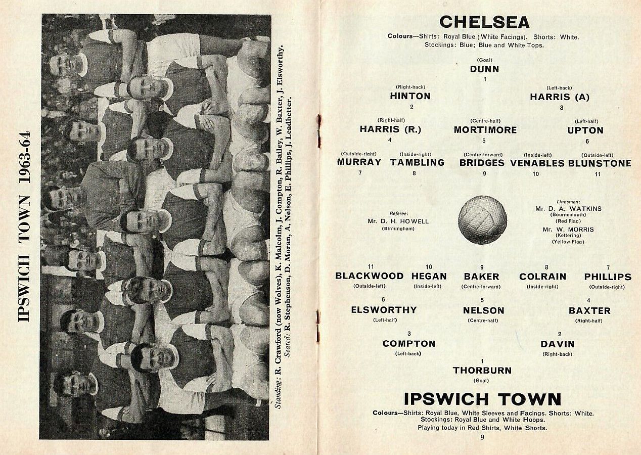 1 John Dunn, 2 Marvin Hinton, 3 Allan Harris, 4 Ron Harris, 5 John Mortimore, 6 Frank Upton, 7 Bert Murray, 8 Bobby Tambling, 9 Barry Bridges, 10 Tommy Harmer, 11 Frank Blunstone |