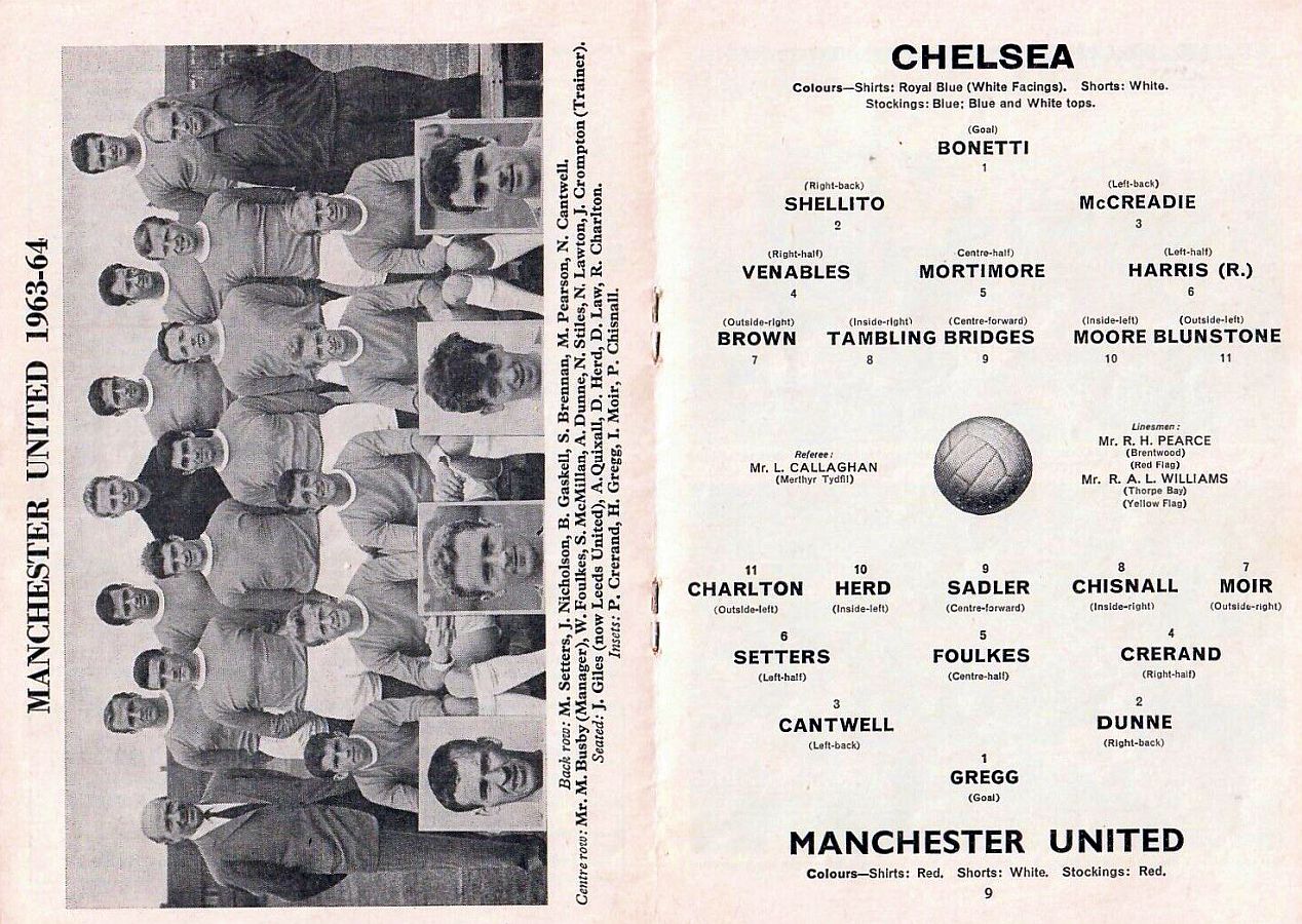 1 Errol McNally, 2 Ken Shellito, 3 Eddie McCreadie, 4 Terry Venables, 5 John Mortimore, 6 Ron Harris, 7 Bert Murray, 8 Bobby Tambling, 9 Barry Bridges, 10 Graham Moore, 11 Frank Blunstone |