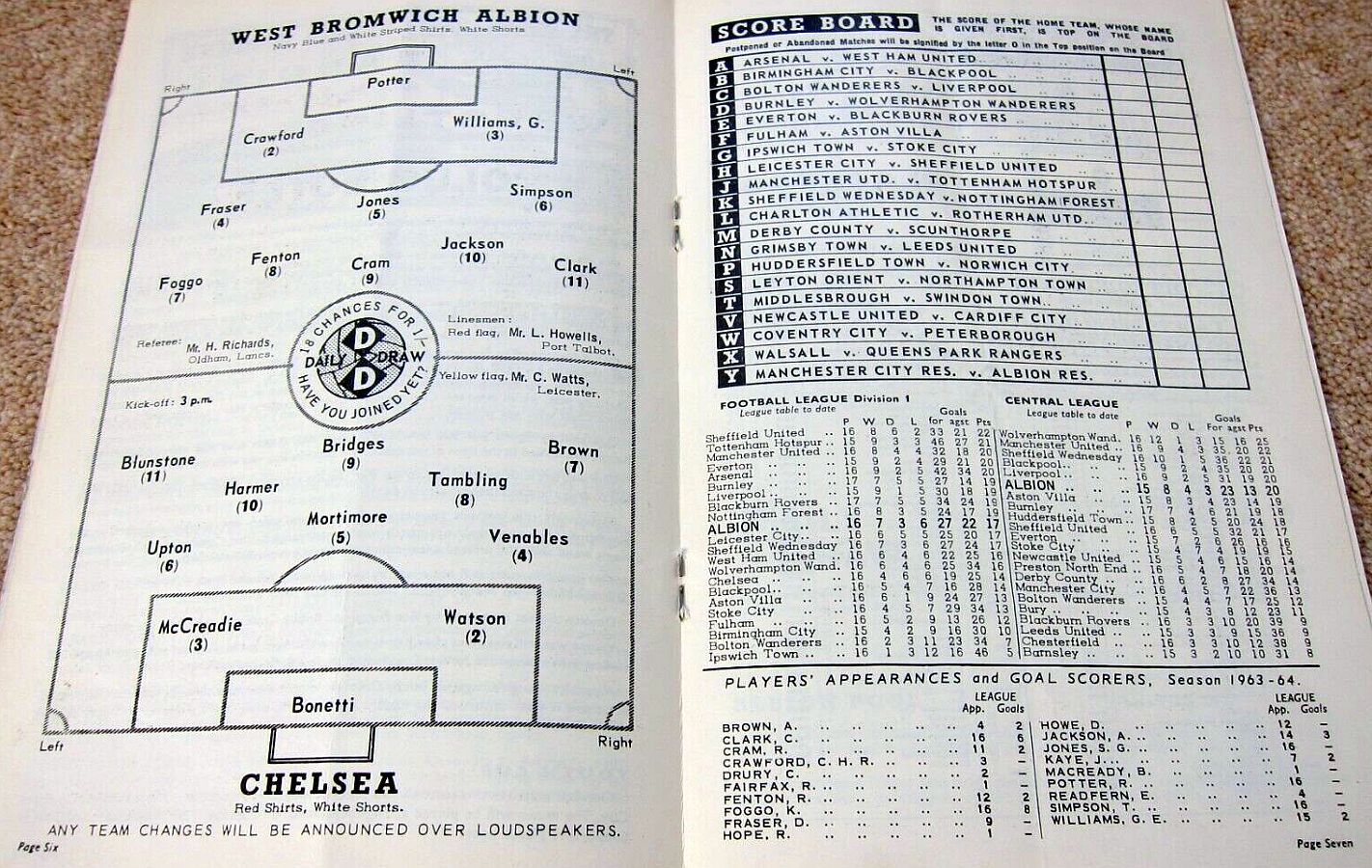 1 Peter Bonetti, 2 Ken Shellito, 3 Eddie McCreadie, 4 Ron Harris, 5 John Mortimore, 6 Frank Upton, 7 Dennis Brown, 8 Bobby Tambling, 9 Barry Bridges, 10 Terry Venables, 11 Frank Blunstone |