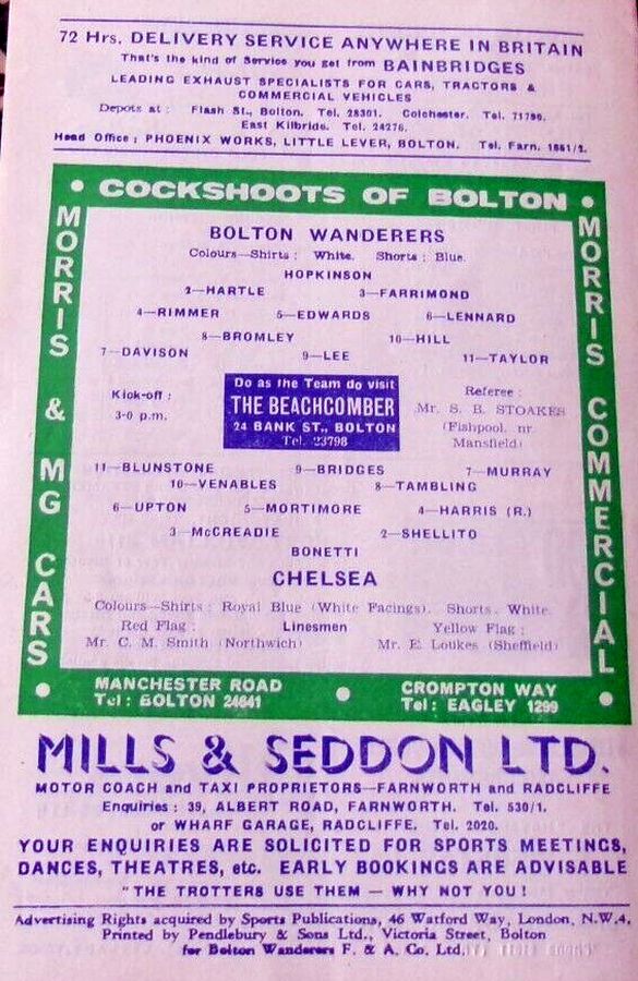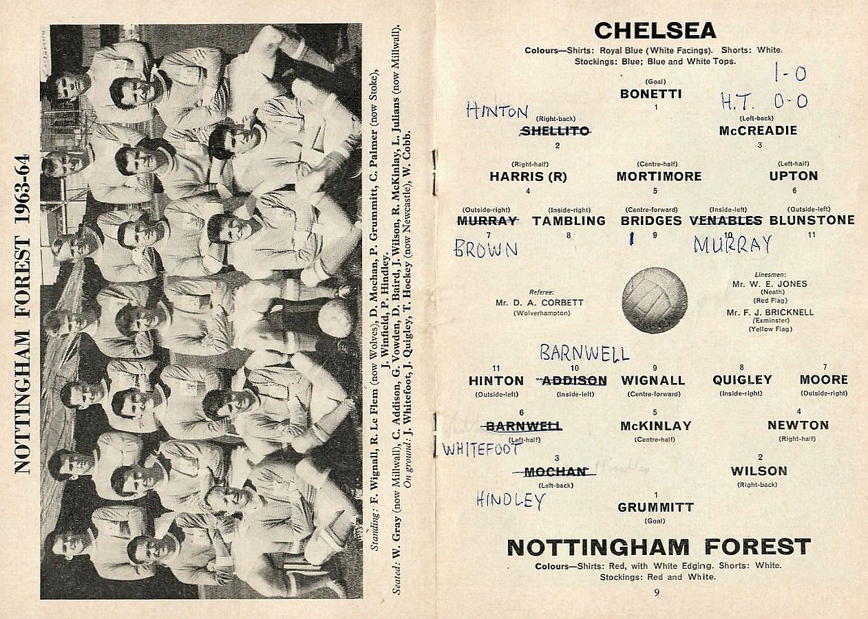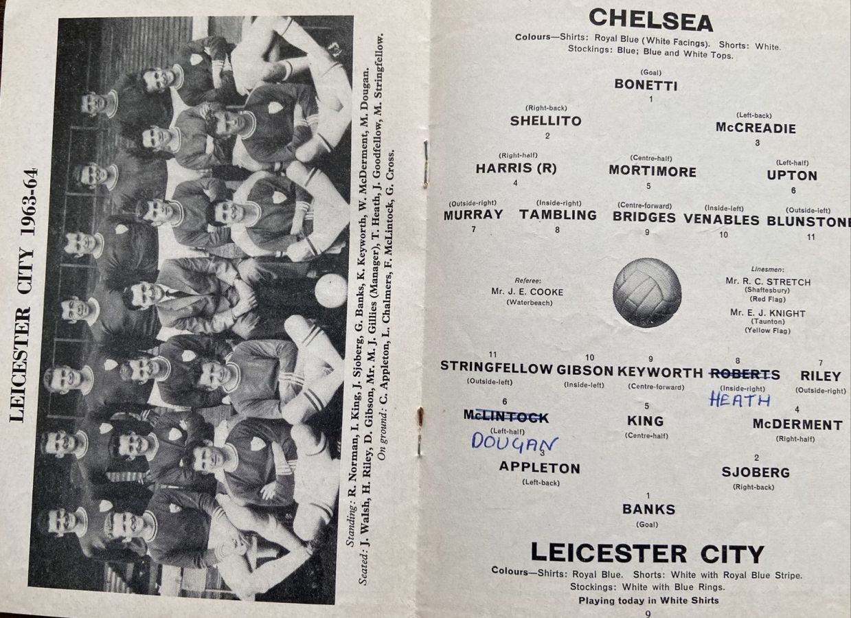 1 Peter Bonetti, 2 Marvin Hinton, 3 Allan Harris, 4 John Hollins, 5 John Mortimore, 6 Ron Harris, 7 Bert Murray, 8 Peter Houseman, 9 Jimmy Mulholland, 10 Terry Venables, 11 Frank Blunstone |