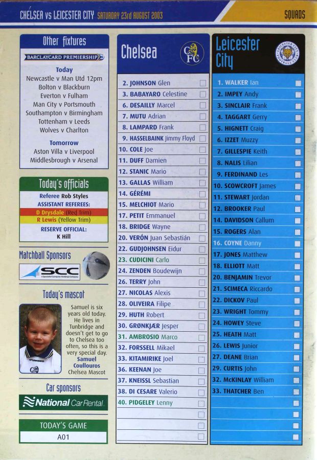 24 Gabriele Ambrosetti, 29 Robert Huth, 15 Mario Melchiot, 39 Carlton Cole, 9 Jimmy Floyd Hasselbaink |