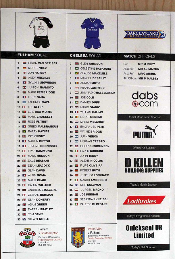 34 Neil Sullivan, 7 Adrian Mutu, 10 Joe Cole, 14 Geremi |
