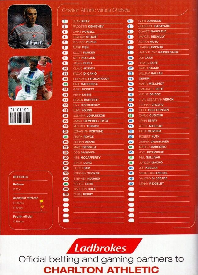 22 Eidur Gudjohnsen, 34 Neil Sullivan |