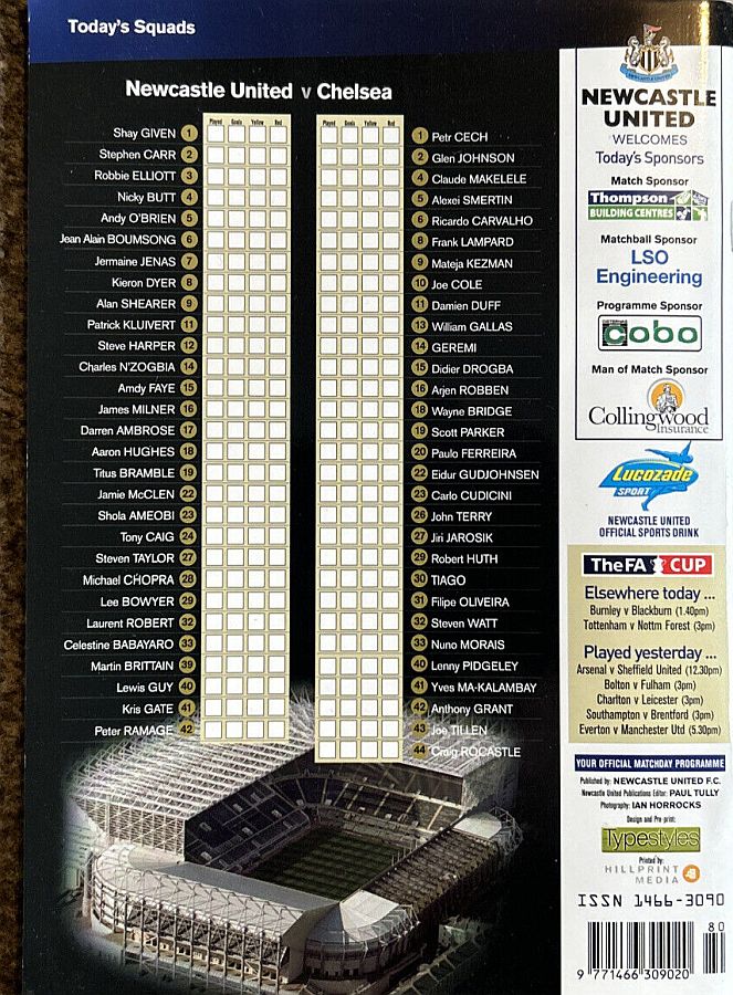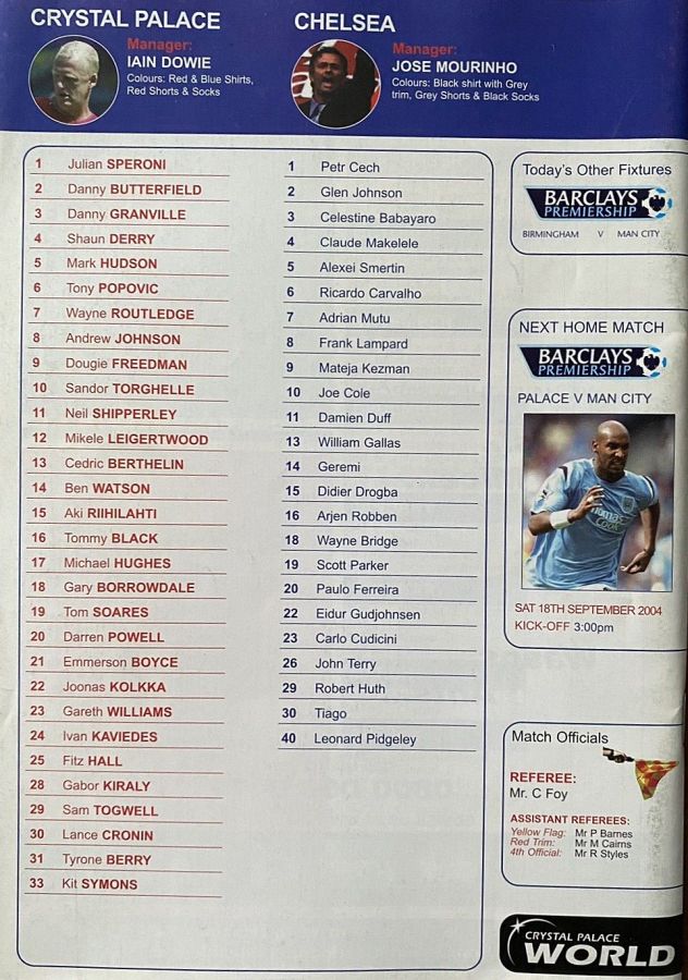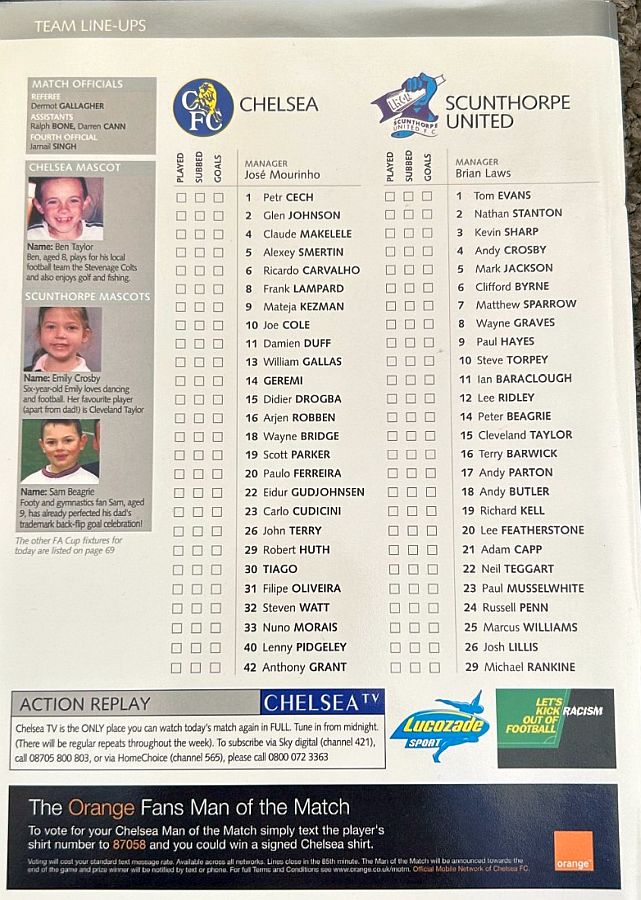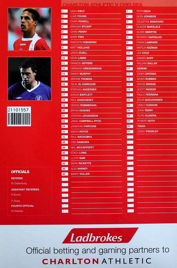 23 Carlo Cudicini, 2 Glen Johnson (27 Jiri Jarosik 72), 4 Claude Makelele, 6 Ricardo Carvalho, 8 Frank Lampard, 10 Joe Cole (42 Anthony Grant 90), 13 William Gallas, 14 Geremi, 22 Eidur Gudjohnsen (33 Nuno Morais 86), 29 Robert Huth, 30 Tiago |