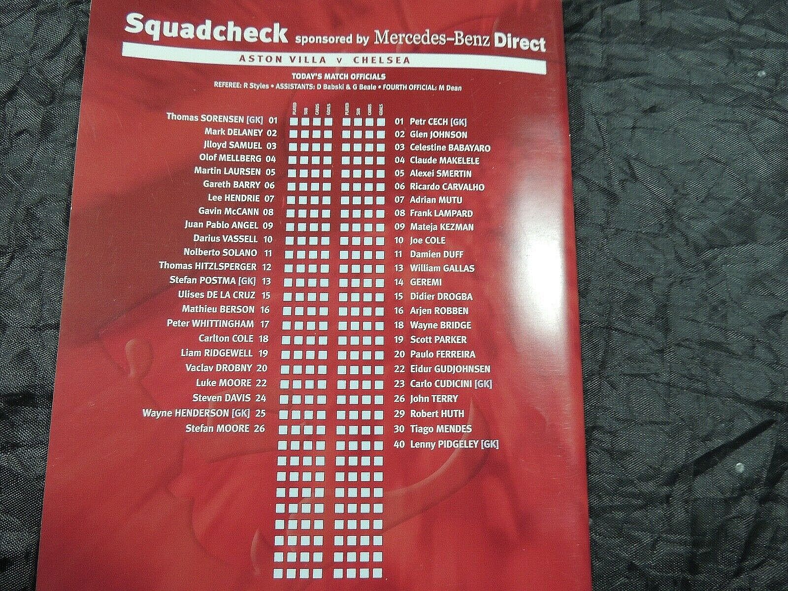 Thomas Sorensen, Ulises de la Cruz, Mark Delaney, Olof Mellberg, JLloyd Samuel, Nolberto Solano (Lee Hendrie 57), Gavin McCann, Thomas Hitzlsperger, Gareth Barry, Darius Vassell (Peter Whittingham 90), Juan Pablo Angel (Luke Moore 67) |