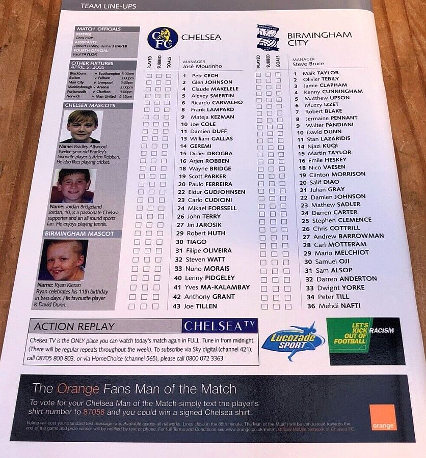 40 Lenny Pidgeley, 6 Ricardo Carvalho, 7 Adrian Mutu, 19 Scott Parker |