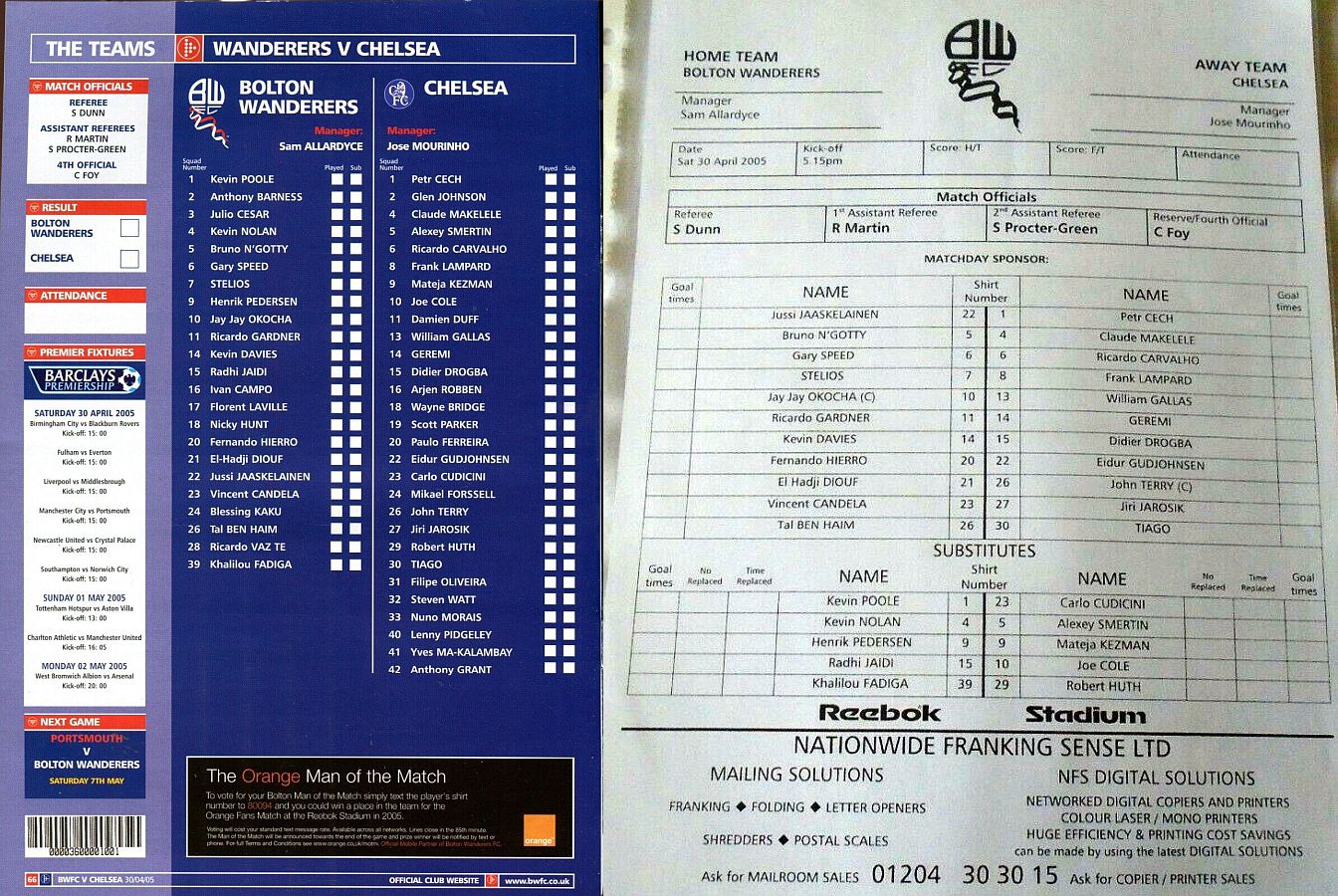 1 Petr Cech, 2 Glen Johnson, 4 Claude Makelele, 6 Ricardo Carvalho, 8 Frank Lampard, 10 Joe Cole (16 Arjen Robben 45), 11 Damien Duff, 15 Didier Drogba (30 Tiago 74), 22 Eidur Gudjohnsen, 26 John Terry, 29 Robert Huth (27 Jiri Jarosik 45) |
