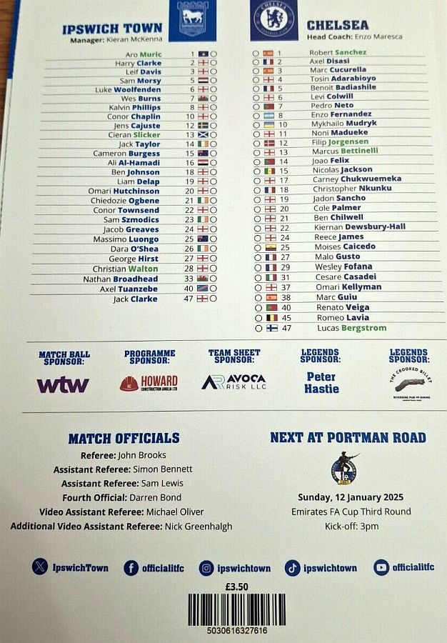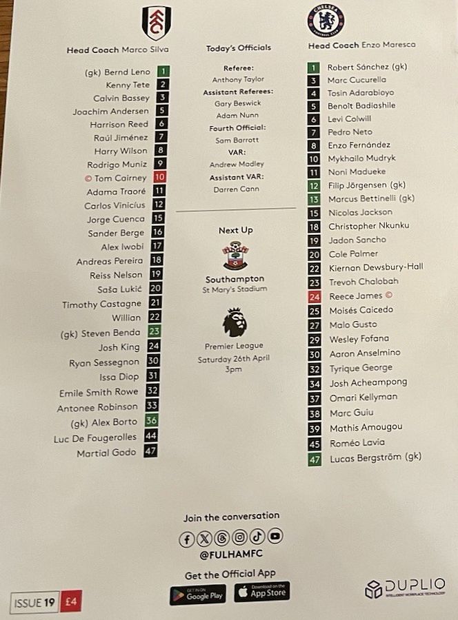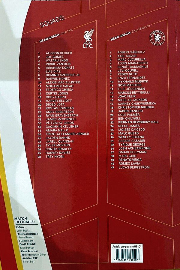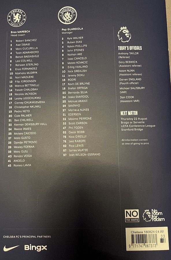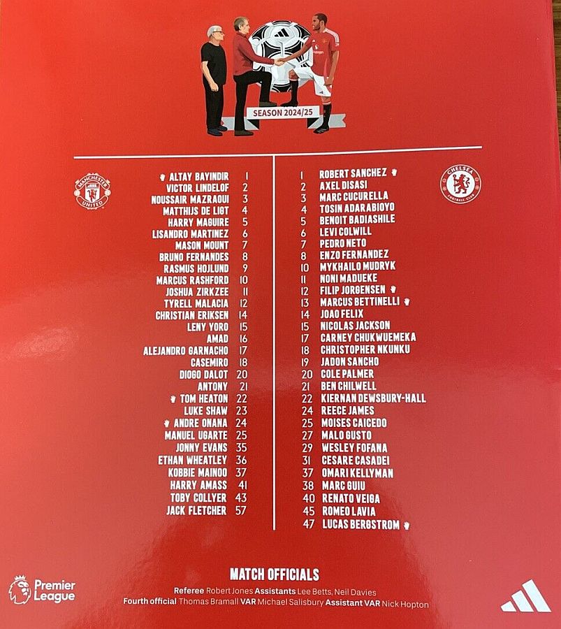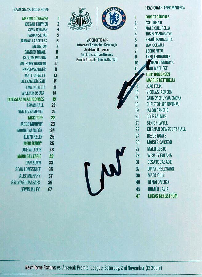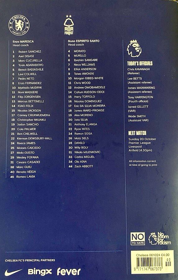 1 Robert Sanchez, 3 Marc Cucurella, 6 Levi Colwill, 7 Pedro Neto, 8 Enzo Fernandez (11 Noni Madueke 82), 9 Liam Delap (15 Nicolas Jackson 64), 10 Cole Palmer (38 Marc Guiu 82), 23 Trevoh Chalobah, 24 Reece James (45 Romeo Lavia 64), 25 Moises Caicedo, 27 Malo Gusto |