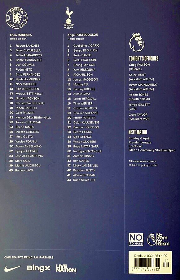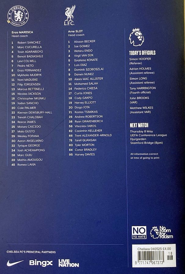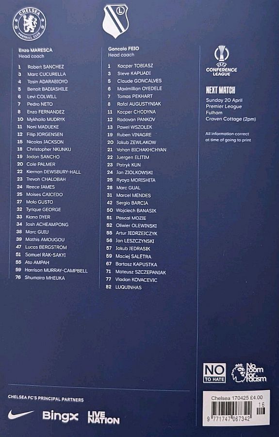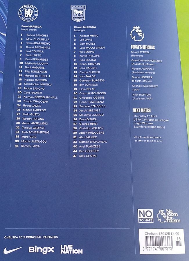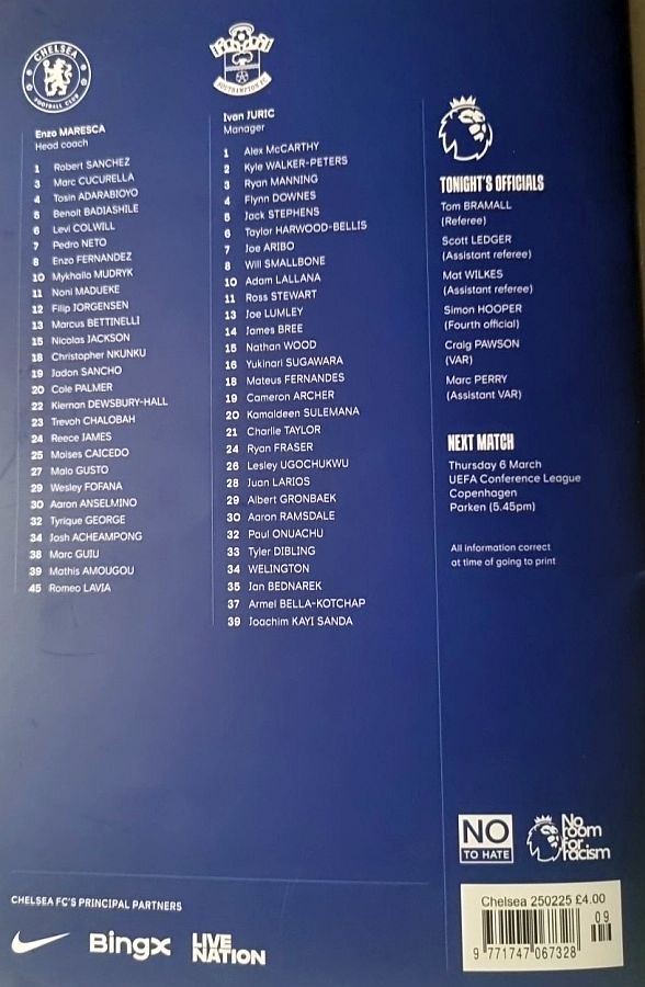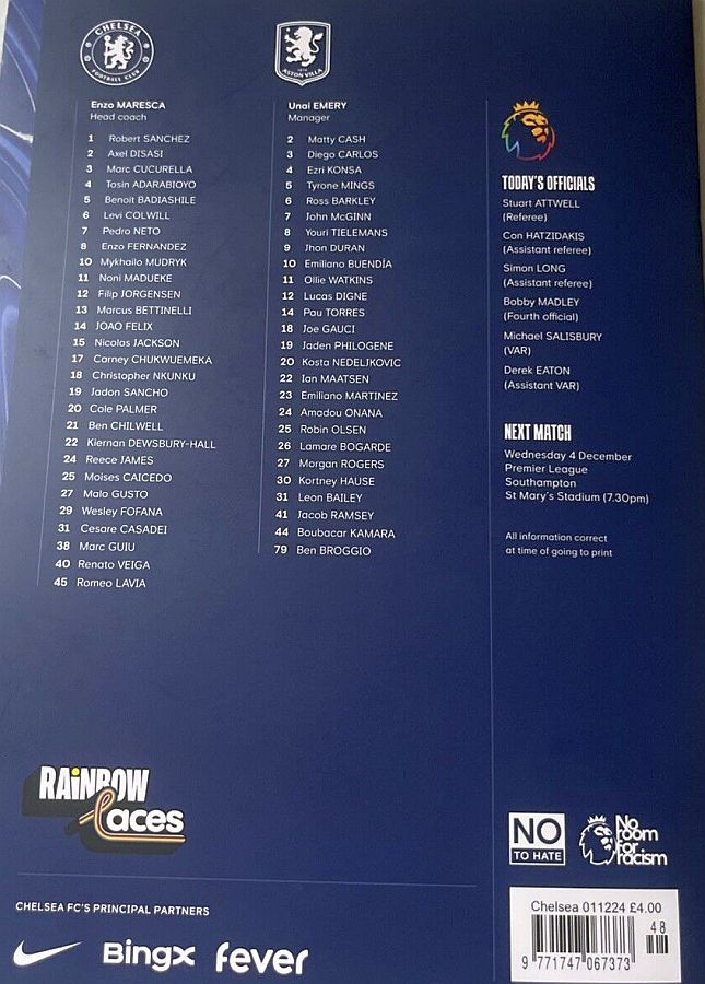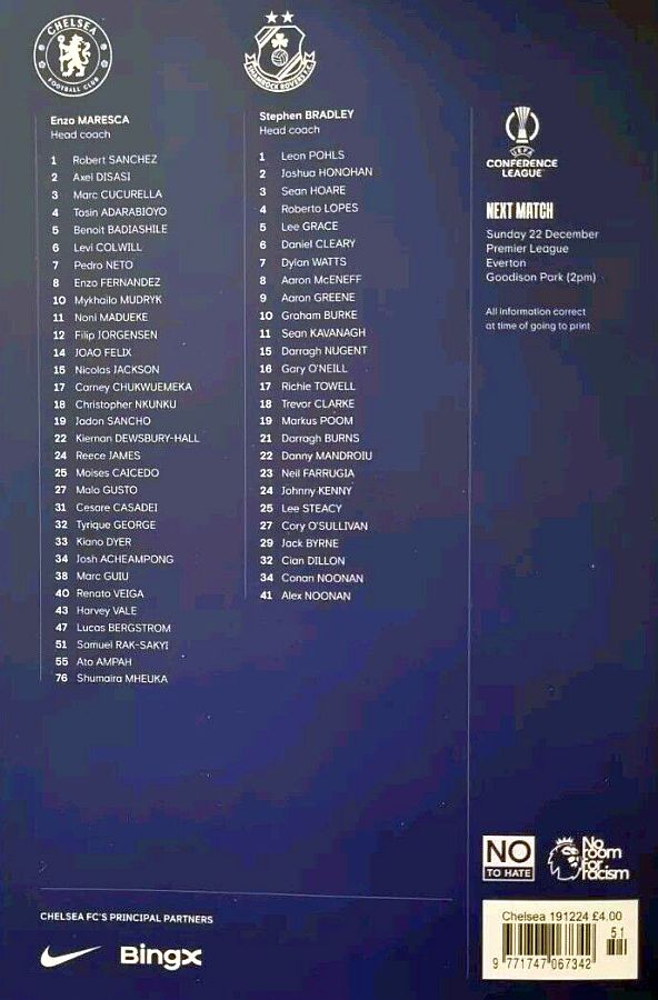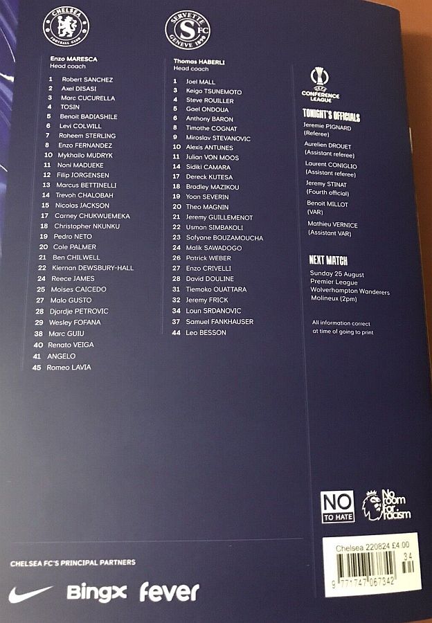 12 Filip Jorgensen, 4 Tosin Adarabioyo, 5 Benoit Badiashile, 38 Marc Guiu |