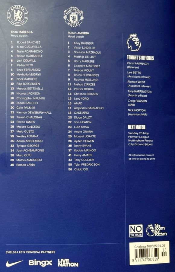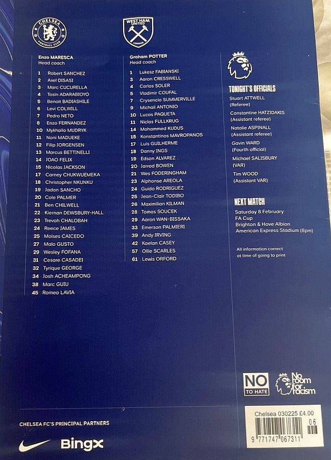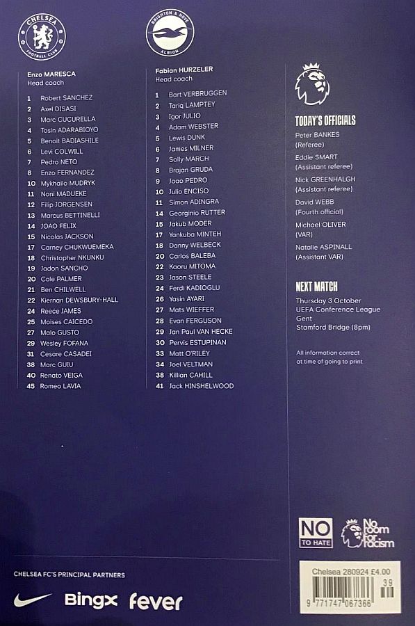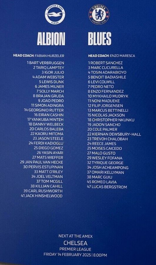 Neto 34, Caicedo 36, Gusto 40, Colwill 82 |